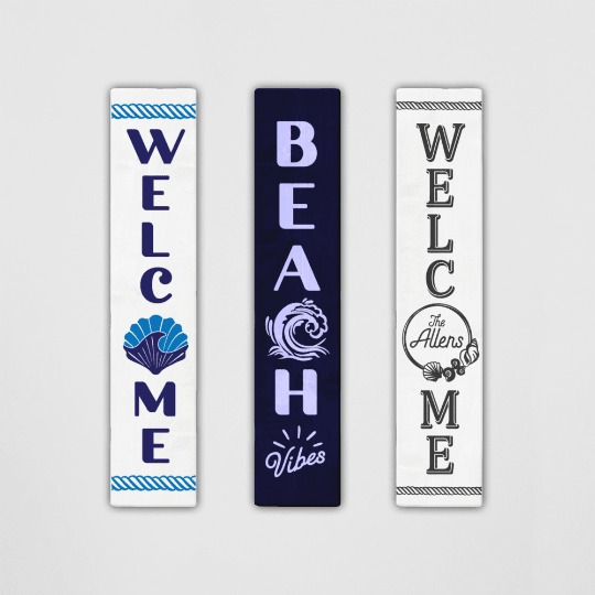 This design fit signs that are approx: 50″x 10″. You can resize the designs to match the size of the board you are working with. The design is black but the color can be changed in your cutting machine program. We recommend painting your entire sign white (sealing it afterwards for best results). Cut a vinyl stencil, apply it and paint in the stencil using the colors blue and red.